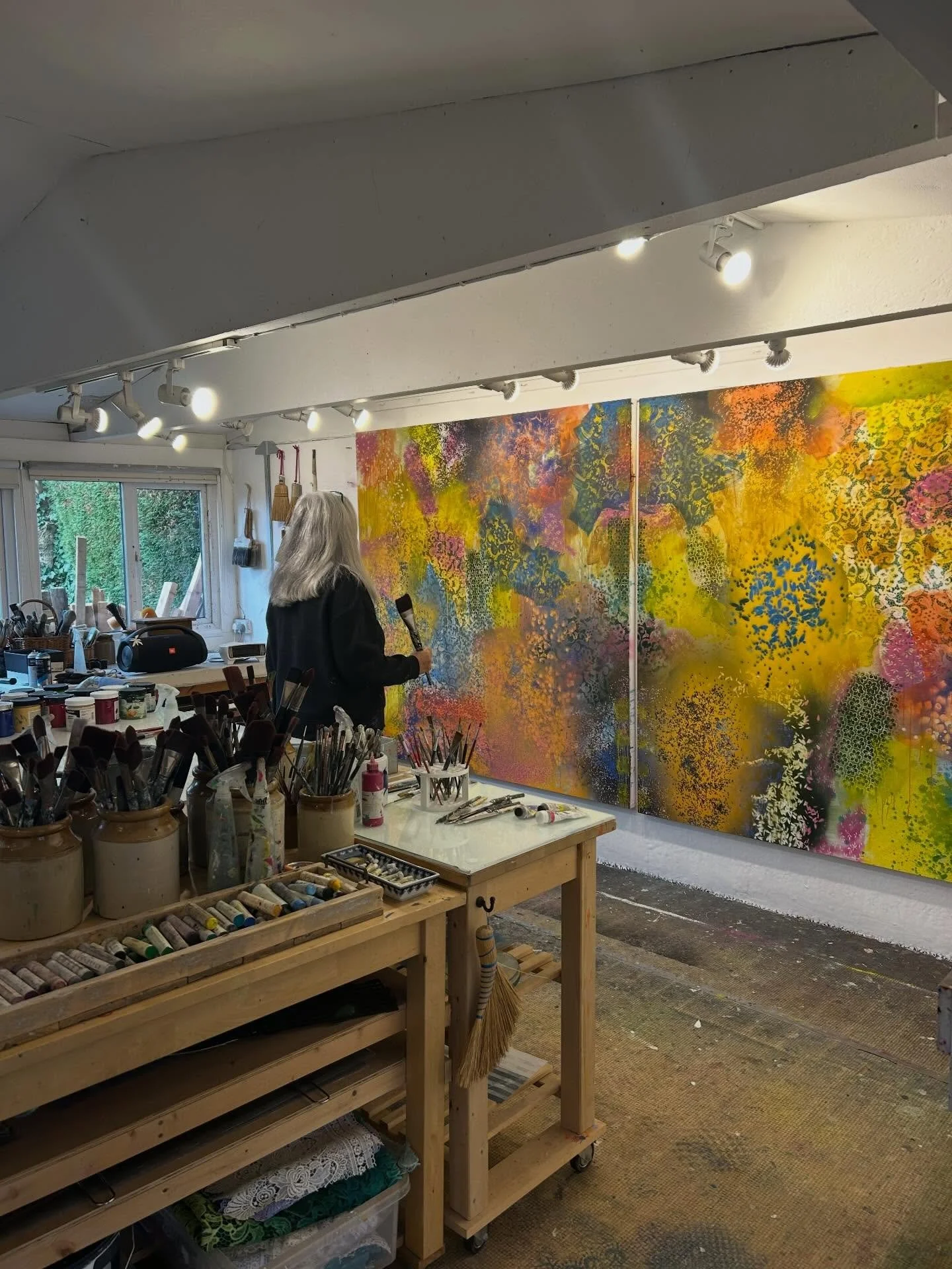 We also run our gallery COLOURBOX to showcase our own and other artists’ work at UK art fairs. You can meet us at these events and we also open our studio in Yorkshire to the public every summer so you can come and see how we work and where we throw the paint around. Information and links to all events are below.