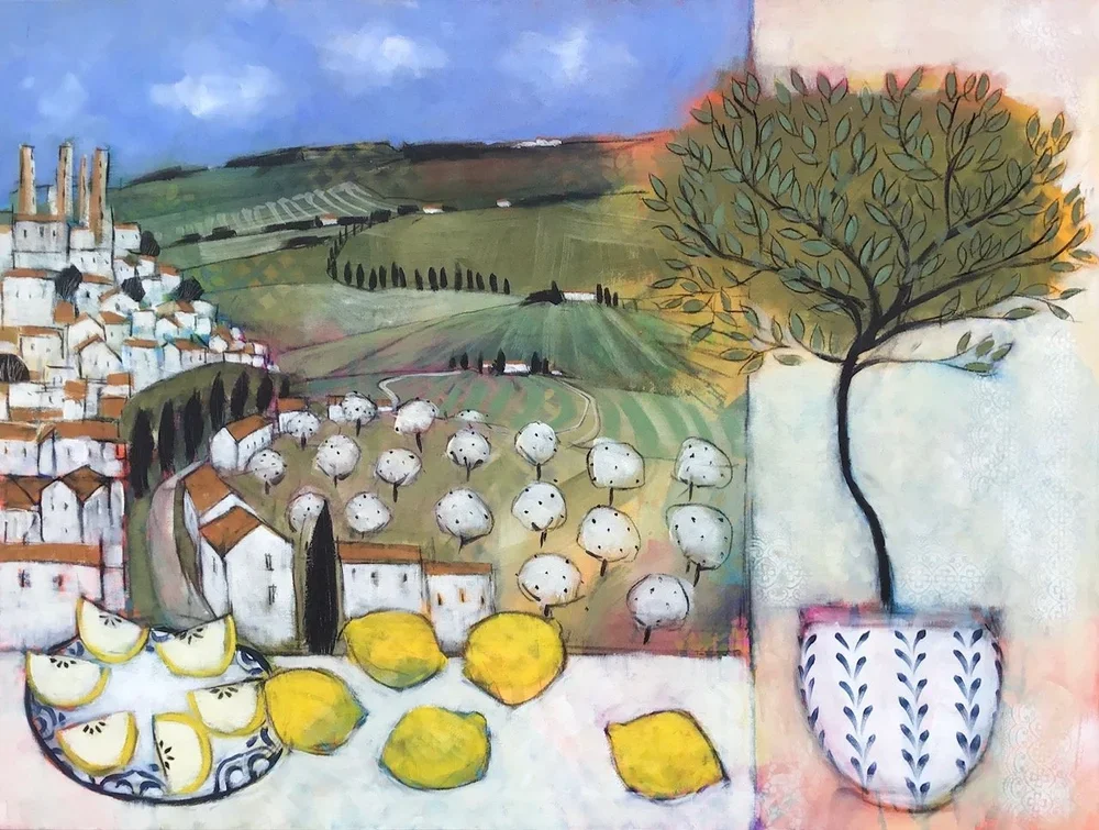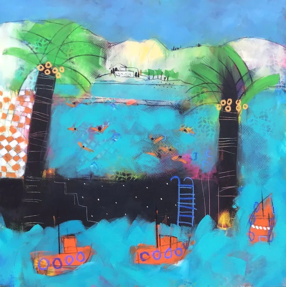 All paintings are acrylic on canvas over 2 x 2 inch wood stretcher. Painting edges are painted white so you can choose to frame or not. All paintings are titled, signed by both of us and dated on reverse.